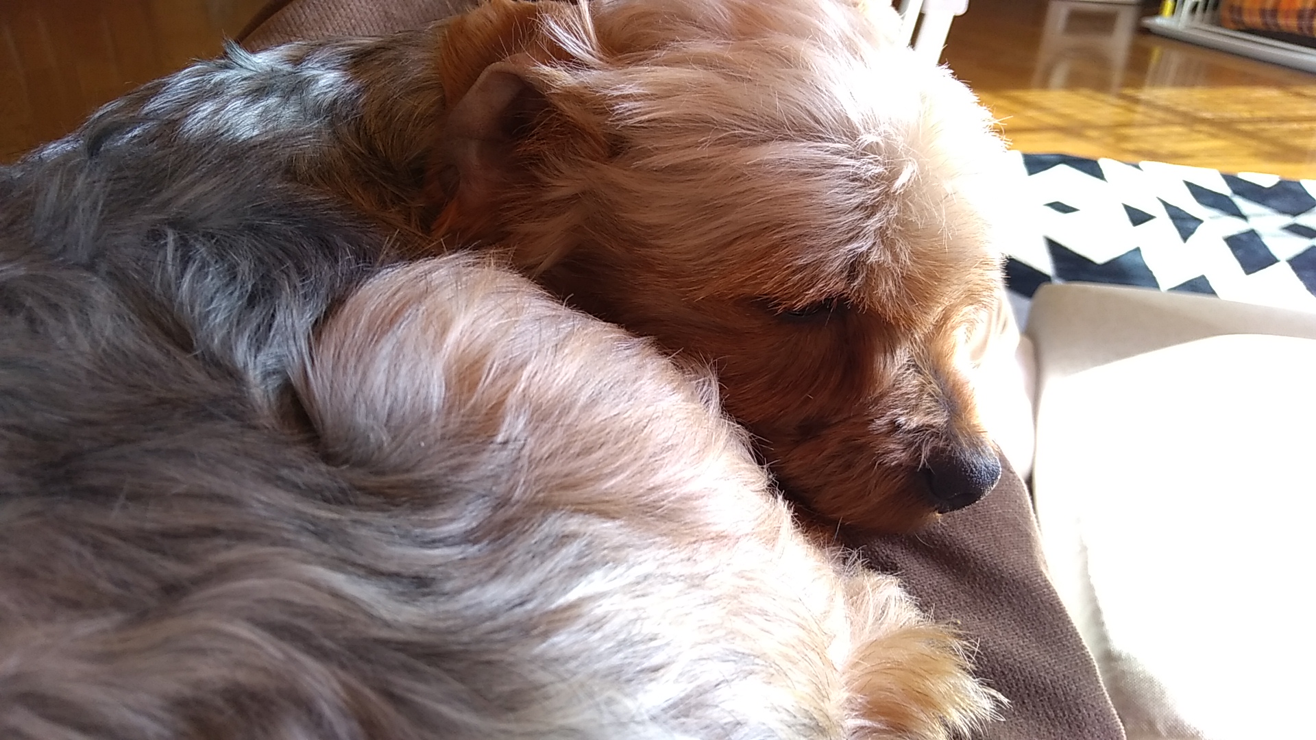 めんま。ヨークシャテリアの雑種、2kgほど。7歳でうちに来ました。